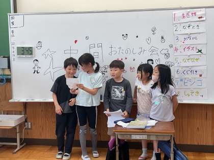 学活で、係活動に取り組んでいます。みんなが楽しめるような企画を考え、中間お楽しみ会という形で発表しました。問題を考えたり、景品を用意したり、班の友達と協力して準備に取り組んでいました。次回は、新しいメンバーで、それぞれの経験を活かして新たな企画を考えていきます。