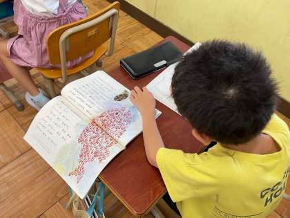 今日は、岩かげに小さな魚を見つけた時のスイミーの様子などを考えました。子どもたちは、「スイミーはきょうだいが食べられてからずっと一人だったから、嬉しかったのではないかな」「やっと会えた」など自分がスイミーだったら・・・という思いを持ちながら考えることができていました。