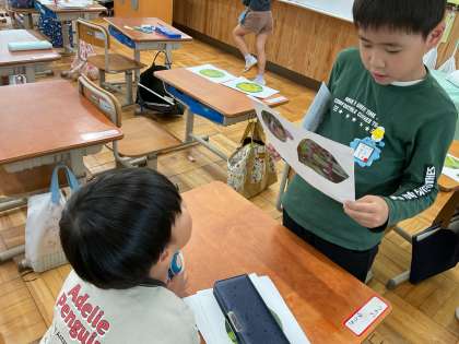 教科書に出てくる花以外のつぼみは、どうなっているのでしょう?図書室の本で調べてクイズを作りました。一人ひとり、違う花を選びました。いろいろな色や形、大きさのつぼみがあって、面白かったです。