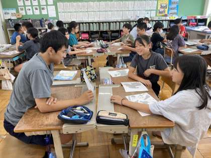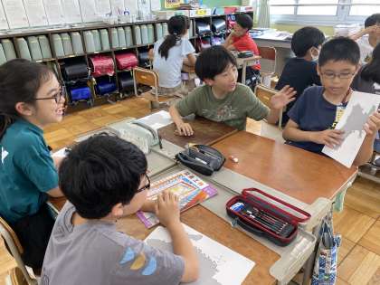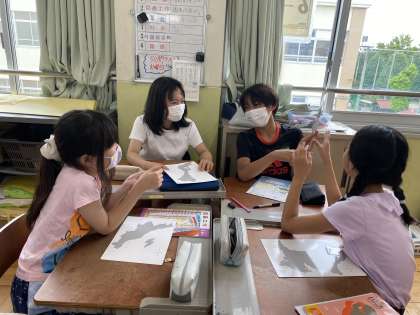 図画工作科『固まった形から』の授業で、1組でも都道府県の形を何かの形に見立てるクイズをしました。1つの正解だけでなく、みんなが見立てたそれぞれのものが正解です!固まった形に色付けをするときに、その力を発揮してくださいね♪