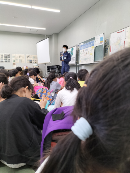 たくさん学習して、学びを深めたあと、最後に備蓄水のおはなしもいただきました。その際「疏水物語」という備蓄水をお土産でいただきました。ぜひお家でもどういった水なのかというのを、子どもたちから聞いてください。