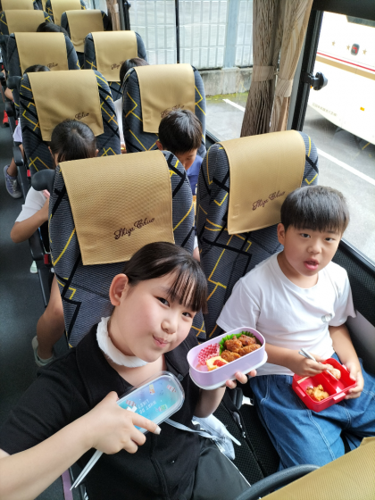 到着し、バスが駐車したところは、空き缶やペットボトルが直方体に固められてきれいに積まれている場所でした。普段見たことのない光景に衝撃を受けながら、楽しくバス車内で昼食をとりました。