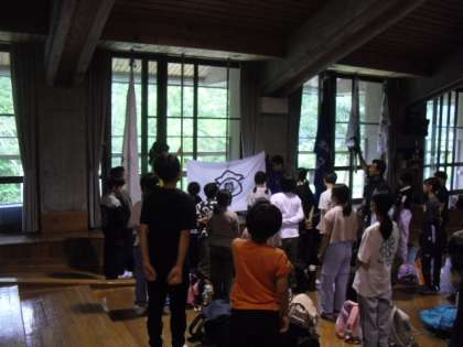 所員さんから生活の注意点をお話していただいたり,葛野小の旗を校歌とともに揚げたりしました。