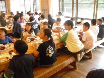 夕食をいただきました。楽しい時間はあっという間にすぎ,夕方の時間になりました。