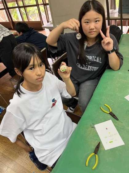 少しずつ完成に近づいてきました。チェーンをつける作業がとても難しいですが、助け合いながら作っています。