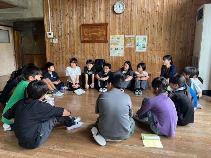 午後の活動は冒険の森を予定していましたが、朝から降っていた雨で地面がぬれているため、活動内容が変更になりました。屋内でできるいくつかの活動の選択肢がある中で、リーダーが中心となって活動内容を決めました。「山の家でしかできない活動がいいな」「今日のめあてにそった活動にしたらどうかな」など色々な意見を出して決定しました。とても有意義な話し合いになりました。