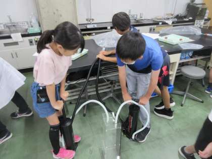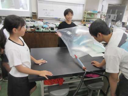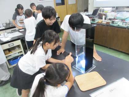 本日7月8日は6年生の科学センター学習でした。6年1組は雲ができるメカニズムについて実験を通して学習しました。科学センターにある色々な実験装置を使ってグループで立てた予想が正しいか検証しました。学習の最後には自分たちで雲を作りました。