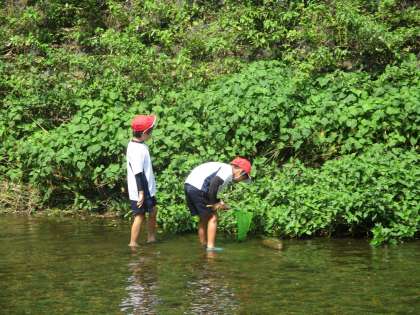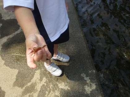 葉っぱの陰や石の下などをそ〜っと探してみるといろいろな生き物がいました!学校に連れて帰って観察したいと思います。