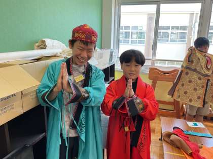 友だちの日の取り組み7月は「多文化共生」をテーマに行いました。昨年度はエチオピアについて学習した子どもたち。今年度は相撲でおなじみのモンゴルの学習です。モンゴルの暮らしや文化について知ったあとに、文化体験を行いました。世界に目を向けて頑張る子どもたちが増えてくれると嬉しいです!
