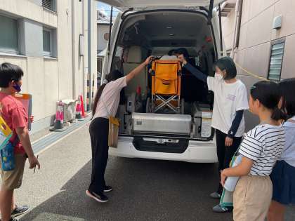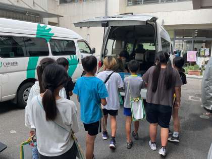 先日お話をしていただいた職員さんがお勤めの施設に見学に行きました。お話いただきたことを実際に見ることで新しく考えたり感じたことが多かった子どもたちでした。送迎車の設備を使わせていただく体験もして、その時に大切なことなどを教えていただきました。今日の見学を今後の学びに生かしていきたいと思います。