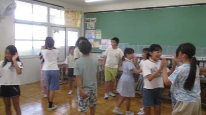 今日は、サマースクールでした。提出できるものを提出したら、まずは久しぶりに会えたので、全員で挨拶をたくさんしました。すると、そこへ教務主任の先生のご登場!ハイタッチして挨拶していました。