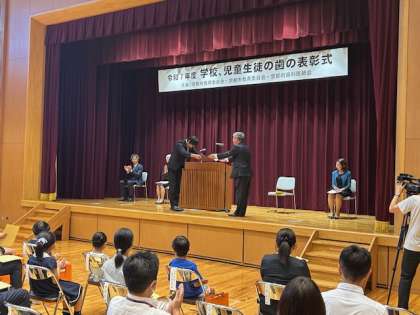 これは、虫歯が少ないなど、健康な歯の人が多い学校に送られる賞です。中でも葛野小は「特別表彰」といって、「とても優秀です」という賞をもらいました。これも子どもたちが歯磨きをしっかりし、歯を大切にしているからだと思います。そして、ご家庭の協力があってのことに他なりません。