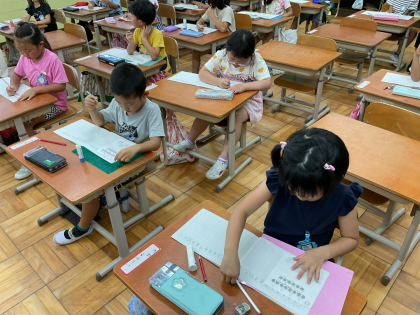 今日の算数では、さくらんぼやいちごの数の数え方を考えました。数えるものがたくさんあると1つずつ数えるのは大変だから、2つずつや5つずつなど、同じ数のまとまりをつくると数えやすいことがわかりました。日常の生活の中でも、2とびや5とびで数を数えてみてね。