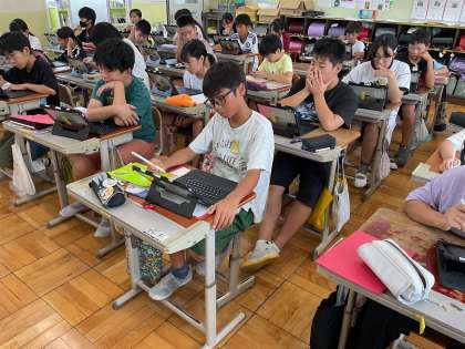 図画工作科では、お話を絵にするコンクールの取り組みを進めています。今回、絵を描くにあたって大事にしてほしいことは、絵を通して伝えたい思いをのせることです。その思いを伝えるために、人物の表情や背景など、細かいところまで意識をしながら描き進めてほしいと思います。すてきな作品ができあがりますように。