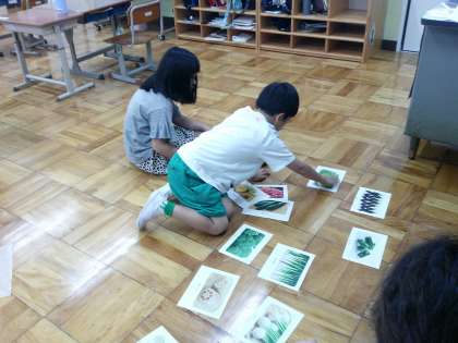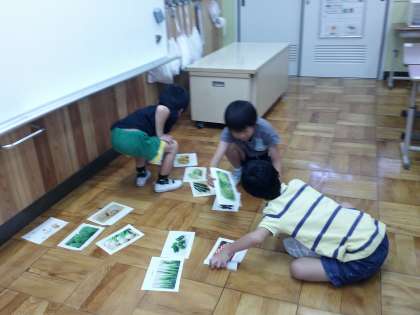 夏野菜の次は冬野菜!冬野菜を育てる学習に取り組み始めました。まずは復習。夏野菜と冬野菜を分ける作業を2グループに分かれてしました。よく覚えていてうまく分けることができました。