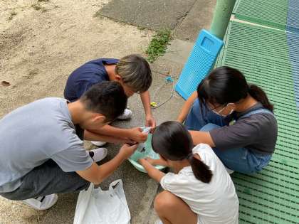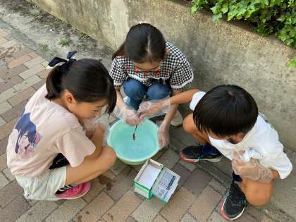 家庭科「夏をすずしくさわやかに」の学習では、衣服の手入れの一つである、洗濯について学んでいます。今週は実際に、汚れた靴下を使って、手洗いの学習をしました。ほとんどの子どもたちが初めての経験です。水の量、洗剤の量を計りながら、まずはつけおきをしました。その後は、つまみ洗いやもみ洗いをして、汚れたところを重点的に洗っていきます。透明だった水がみるみる汚れていきました。