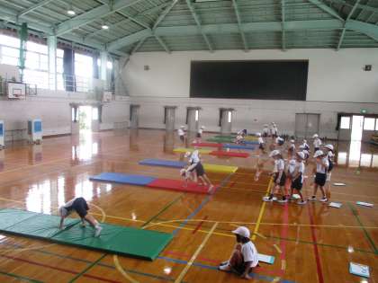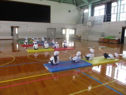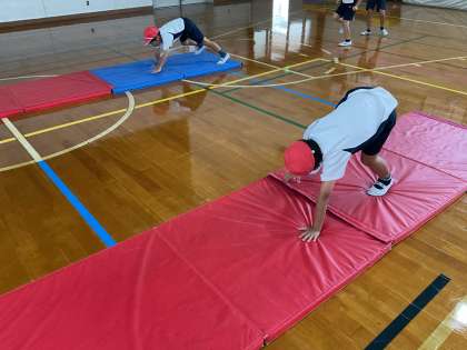 「手はしっかりパーにして開くんだよね。」「背中をしっかり丸めないときれいにゆらゆらできないよ。」と子どもたちもよく思い出して取り組んでいました。安全に気をつけて学習を進めていきたいです。