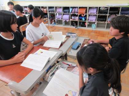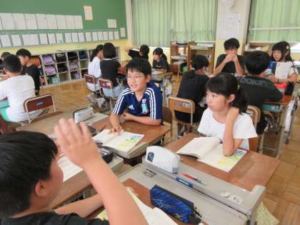 中心人物の綾の訪れた場所を追体験することで、綾の心情の変化を読み取ることができました。「作者の朽木祥さんは自分達読者にただ原子爆弾の恐ろしさだけを伝えたかったのではないと思う。」という意見が出てきました。「過去のことを知ってこれから先どうしていかなければならないか。」「つまり、二度とこんなことがあってはならないってことかな。」と対話の中で考えを深めることができました。