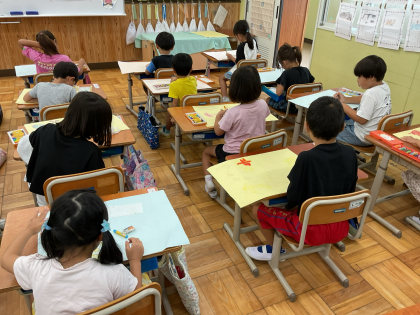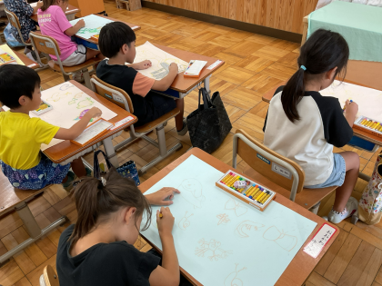 物語を聞いてどんな場面が思い浮かんだかな?どんな動物を描こうか、何色にしようか、どんな動きをしているかなど、色々と考えながら絵を描き始めました。どんな絵に仕上がるか、今から楽しみです。