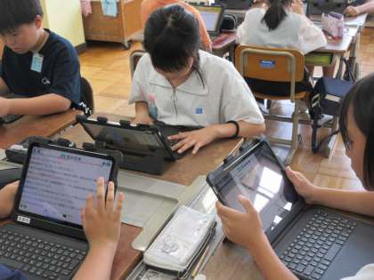 「共に生きる」の学習で9月15日の敬老の日についてグループごとに調べ、交流しました。国際デーについてや、アメリカやイギリス、中国でも高齢者のための行事が設定されていることを知りました。