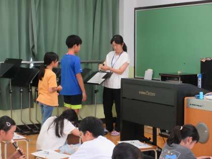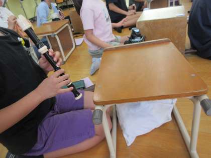ト音記号とヘ音記号について学びました。リコーダーを演奏する際に、指の中でも薬指が動きにくいことや細くて穴をふさぎにくいことを知りました。そこで少しでもしっかりと穴を薬指でふさぐための「まほうのシール」を貼ってもらいました。まほうがうまくかかるといいですね。