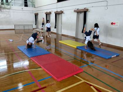 もうすぐスポフェスの練習が始まりますが、それまではマット運動を頑張ります!!