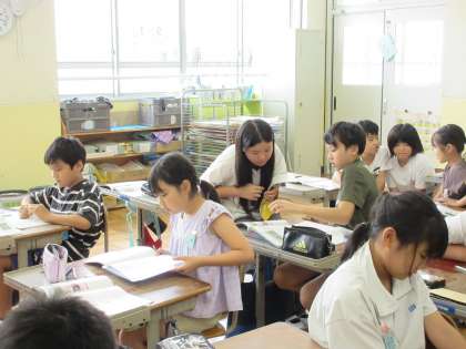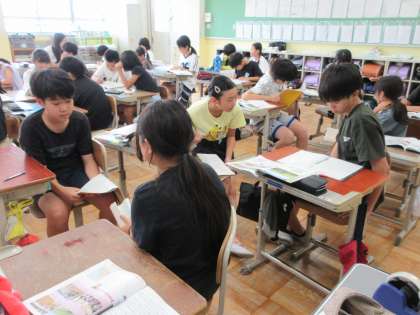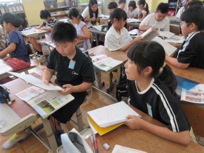 「なぜ、米の生産量と消費量は減ってきたのか」という疑問に対して、意見の交流をしています。教科書とグラフを見て「米の消費量が減ったことで、生産調整をしているな…。」「消費量と生産量をちょうど同じ量にしたいのかな。」という話が出てきました。