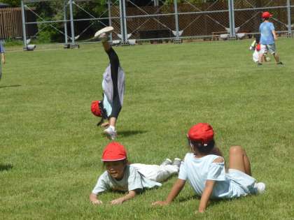 お昼ご飯の後は、芝生の広場で遊びました。それほど暑くなく、おにごっこをしたり、芝生に寝転がったりして遊びました。今日は、遠足で楽しかったことを家の人に話してほしいと伝えています。ゆっくりお家で聞いていただけると幸いです。