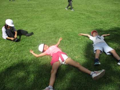 おにごっこをしたり、芝生で大の字で寝っ転がったり…