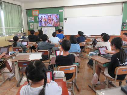 「もし何度も同じことを聞かれたら・・・」「家族なのに誰かわかってもらえなかったら・・・」というNHK for school での認知症について学ぶ講座の中での問いに対して、出演者とともに考えました。「結局自分達と同じで、相手に対しての言い方がポイントやな。」や、待つことや一緒にすることが大切なんだね。」という意見が聞かれました。