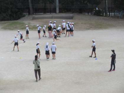 ようやく運動がしやすい季節になってきました。5年生は久しぶりに2クラス合同リレーを行いました。やはりバトンパスが大切だということで、子どもたちは、仲間とともにバトンを受け渡すベストタイミングを試行錯誤してとらえようとしていました。