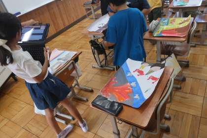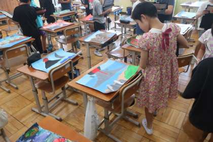 ついに、図画工作科で取り組んでいた「言葉から感じて」の作品が完成しました。