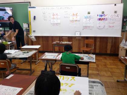 各々が考えた、「へんしん〇〇」。絵の方もだいぶん仕上がってきました。今日は、画用紙にかく言葉「くし」⇒「くじ」などの字体を色々書いてみて練習しました。