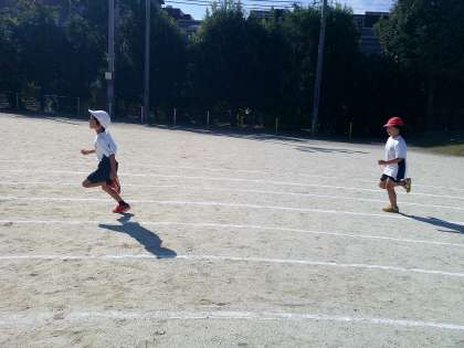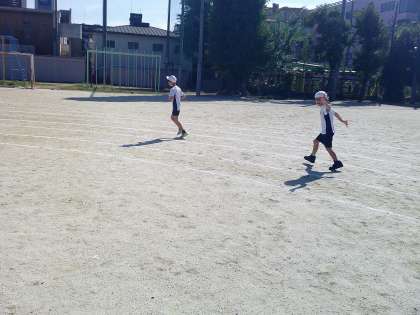 3年生は80メートル走の練習をしました。今までの50メートル走と違いすごく距離があって、走る前は緊張していましたが、無事走りきることができました!本番も力が発揮出ればいいな。