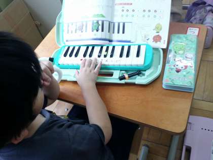 音楽の授業では鍵盤ハーモニカを練習しています。猫の手が難しかったのですが、だんだん上手にできるようになってきました。