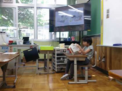 今日の児童の読み聞かせは「さっちゃんとあかちゃん」。自分の思いと重なる部分もある本の選択で、心がこもっている読み方でした。最後にはみんなから自然と拍手が沸きました。みんなそれぞれに、読み聞かせがずいぶん上手になりました。また、図書館で本を真剣に読む姿が見られたり、廊下に展示している人権の本を手に取って読んでたりと、本を身近に感じられるようになったと嬉しく思います。これからもいろんな本に出会ってほしいと思います。