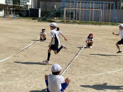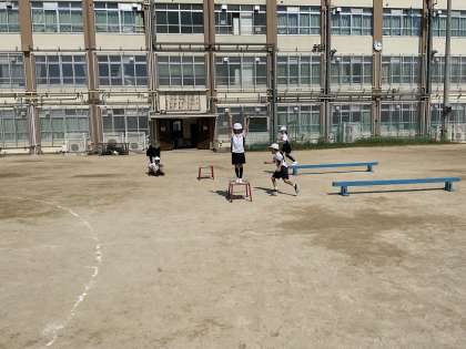 「ミニハードル・ゴム跳び・平均台」ゾーンでは、リズムよくハードルやゴムを越えたり、慎重に平均台を歩いたりしました。勢いよく障害物を走りこえて、安全に平均台でバランスをとることができました。3年生の用具走はまだ始まったばかりです。いろいろな動きを試していきます。本番はどんな動きになるか、お楽しみに☆