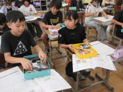 整理整とんの手順を確認した後、自分のお道具箱の中を使いやすい状態に整理・整頓してみました。「見て!めちゃきれいになったで。」と嬉しそうにお道具箱を見せてくれました。