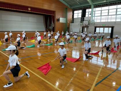 今日は、これまで部分別に練習してきたことをつなげる時間です。移動もたくさんあります。気を引き締めて練習する姿が素敵でした。明日はいよいよ外での練習です。