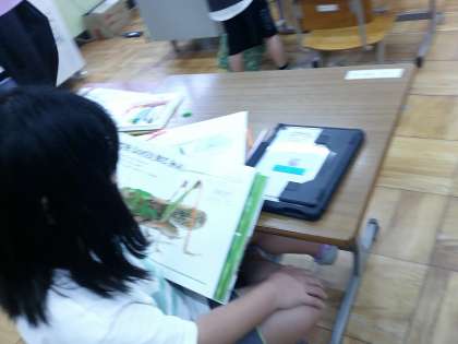 今日は秋・冬の生き物の育て方を学習しました。秋にはどんな虫がいるのか、その中でどの虫を調べたいかを決めて、飼い方をiPadや本で調べたりしました。次はいよいよ公園に虫捕りに行きます。