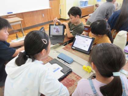 「関東平和でのレタスづくり」「福島盆地の果物づくり」「宮崎県の肉牛の飼育」の3つのグループで調べたことをロイロノートでまとめて、同じグループ同士で交流しました。次は別のグループと交流します。