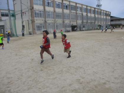 各クラス、バナナおにごっこやけいドロなど、グラウンドを走り回って遊びました。
