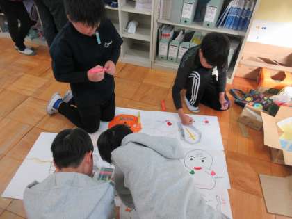 ハロウィンパーティーに向けての準備を休み時間にピッチをあげて行っています。