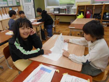 火曜日の朝学習に、「対話タイム」が全校でスタートしました。今日のお題は「スポフェスで頑張ったこと」をグループで話し合いました。木曜日に書いた振りかえりのプリントを見ながら、思い出して話していました。これから毎週、いろんなことをテーマに、自分の気持ちを伝あうことを頑張っていきます。
