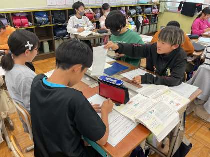 国語科『みんなで楽しく過ごすために』は、目的や条件に応じて話し合うことをめあてに学習を進めていきます。1年生との交流会で、どんな遊びをすればみんなが楽しめるのか、ルールがしっかりと分かるのか、理由や根拠、自分の立場をはっきりさせながら話し合いをします。今回は、話し合いの進行計画を考えました。考えがしっかりと整理できるように、進行計画をもとに話し合いましょう!