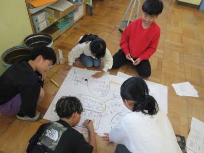 デイサービス訪問に向けて、チームで自己紹介カードや高齢者の方々と交流するためのゲームを作成しています。