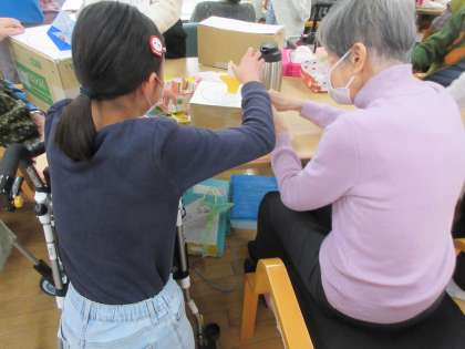 葛野デイサービスを訪問しました。予想以上に多くの利用者さんが待っていてくださったため、1対1の交流ができました。