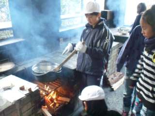 火おこし体験でおこした火を,飯盒すいさんに使います。