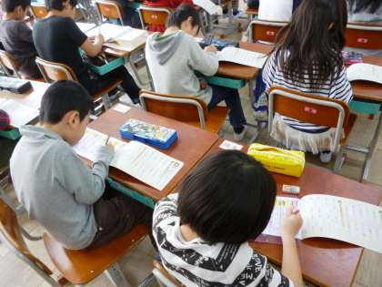 漢字ドリルを配って今日から3年生で新しく学ぶ漢字を練習しはじめました。