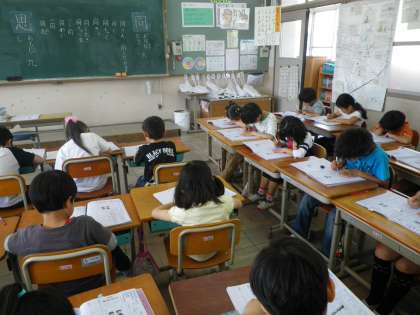 新しく習う漢字を練習しています。一画一画丁寧に、書き順を確かめながら書いています。